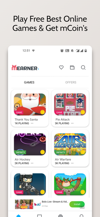 mEarner é um aplicativo de jogos para Android que oferece uma vasta gama de mais de 100 jogos, tanto para um jogador quanto para múltiplos jogadores. O principal atrativo é a possibilidade de ganhar recompensas jogando. Os usuários podem coletar ME Coins, que podem ser trocadas por vales de jogos como Diamonds e UC, entre outros. Além disso, o aplicativo é totalmente gratuito, permitindo que qualquer pessoa jogue sem a necessidade de investimentos financeiros.